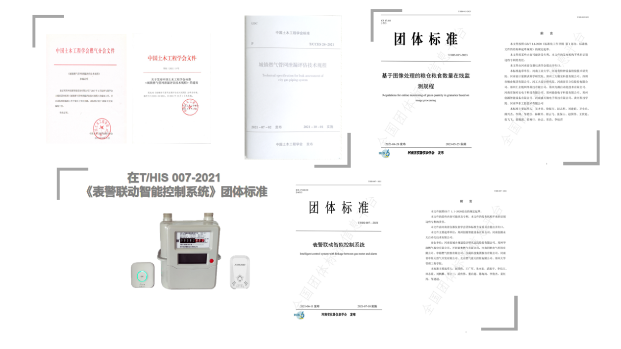 3、中國土木工程學會首部社團標準《城市燃氣管網泄露評估技術規(guī)程》行業(yè)標準參編單位、河南省儀器儀表學會《表警聯動智能控制系統(tǒng)》團體標準主編單位、河南省儀器儀表學會《基于圖像處理的糧倉糧食數量在線監(jiān)測規(guī)程》團體標準起草單位。