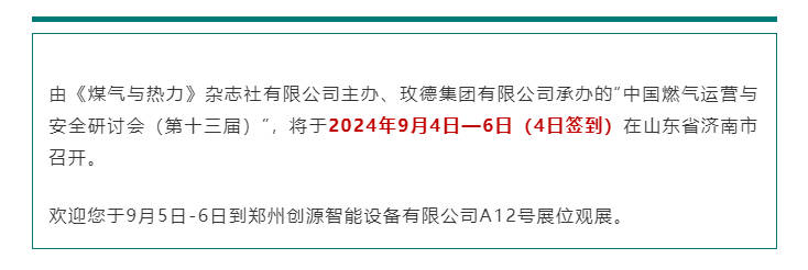 【會議預熱】鄭州創(chuàng)源智能設備有限公司邀請您參加"中國燃氣運營與安全研討會(第十三屆)"