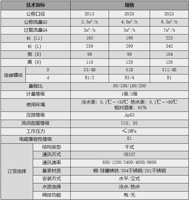 該款光電直讀物聯表是在光電直讀水表基礎上開發出來的一種智能水表,它以旋翼干式水表為基表,配套光電直讀技術和NB-IoT物聯技術等組成。該產品改變了傳統智能水表的鏈接方式,解決了舊表改造或新小區建設中布線困難問題。產品符合國家標準GB/T778-2007《封閉滿管道中水流量的測量、飲用冷水水表和熱水水表》和行業標準CJ/T188-2004《戶用計量儀表數據傳輸條件》的技術要求。