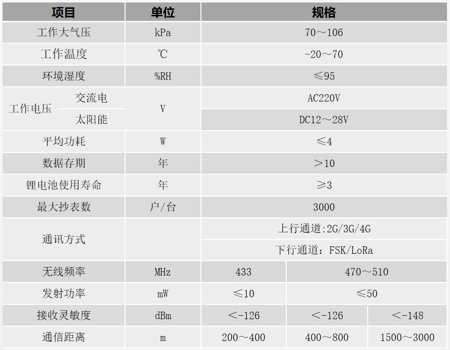 該產品用于小區遠程自動抄表及控制,內置無線通信模塊,可以直接和無線遠傳智能燃氣表通訊,用于抄讀和遠程控制無線遠傳智能燃氣表,抄讀數據通過內置的GPRS模塊傳輸數據到管理中心,實現數據遠程采集和控制。