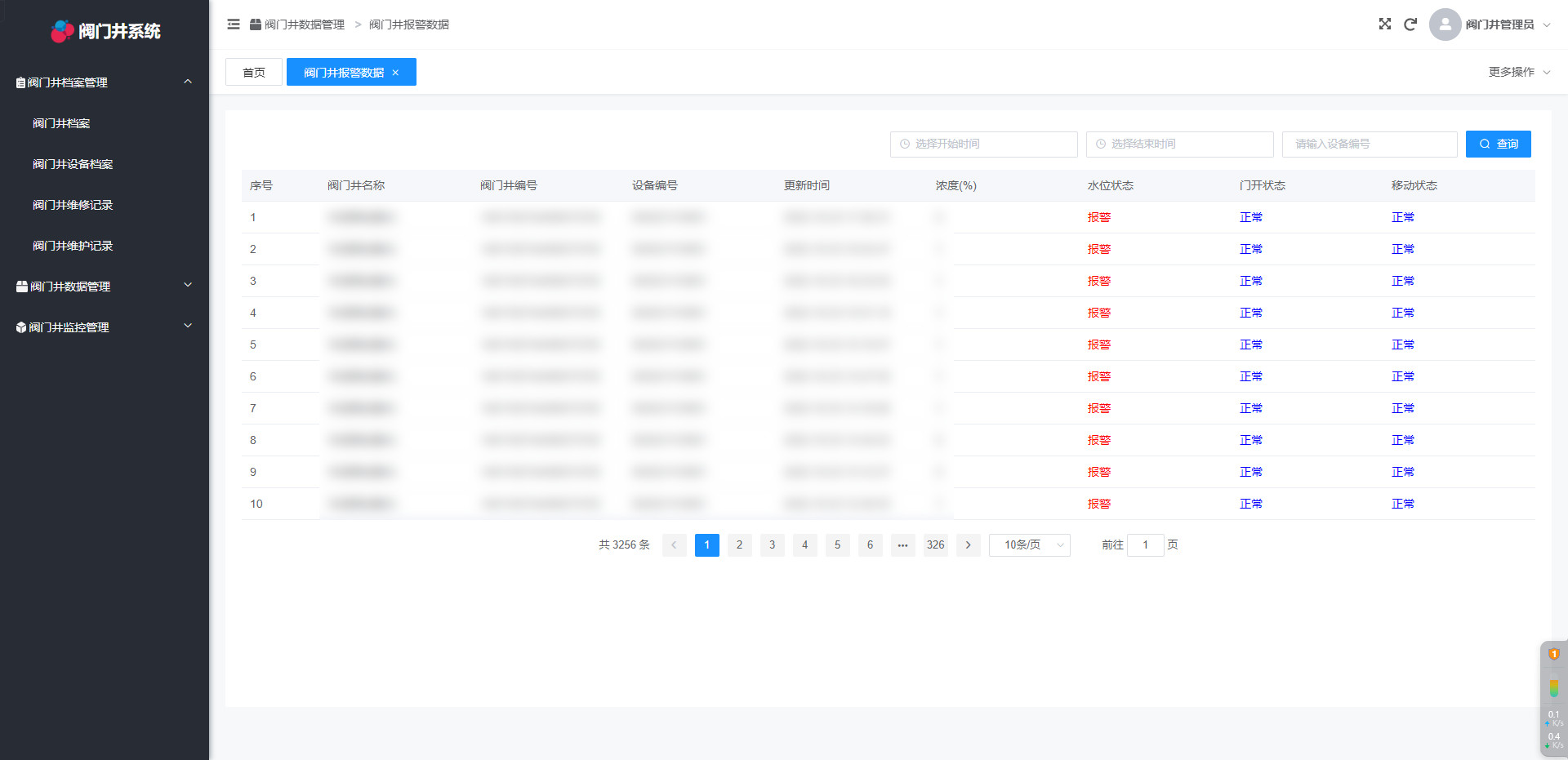 - 7、報表導出:系統支持導出數據報表的功能,用戶可以將閥門井的數據導出為Excel或其他格式,方便進一步分析和報告制作。
